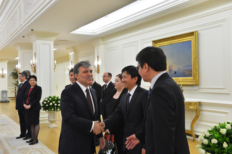 Çankaya Köşkü’ndeki karşılama töreninin ardından Cumhurbaşkanı Gül ve Cumhurbaşkanı Atambayev bir süre baş başa görüştü.
